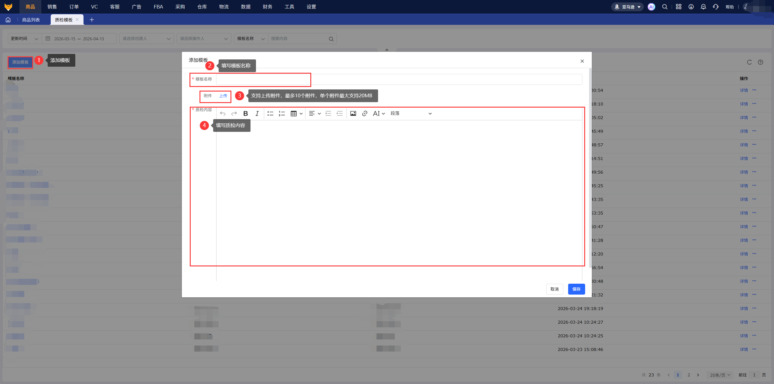 [质检模板]:支持上传10个附件,单个附件最大支持20MB