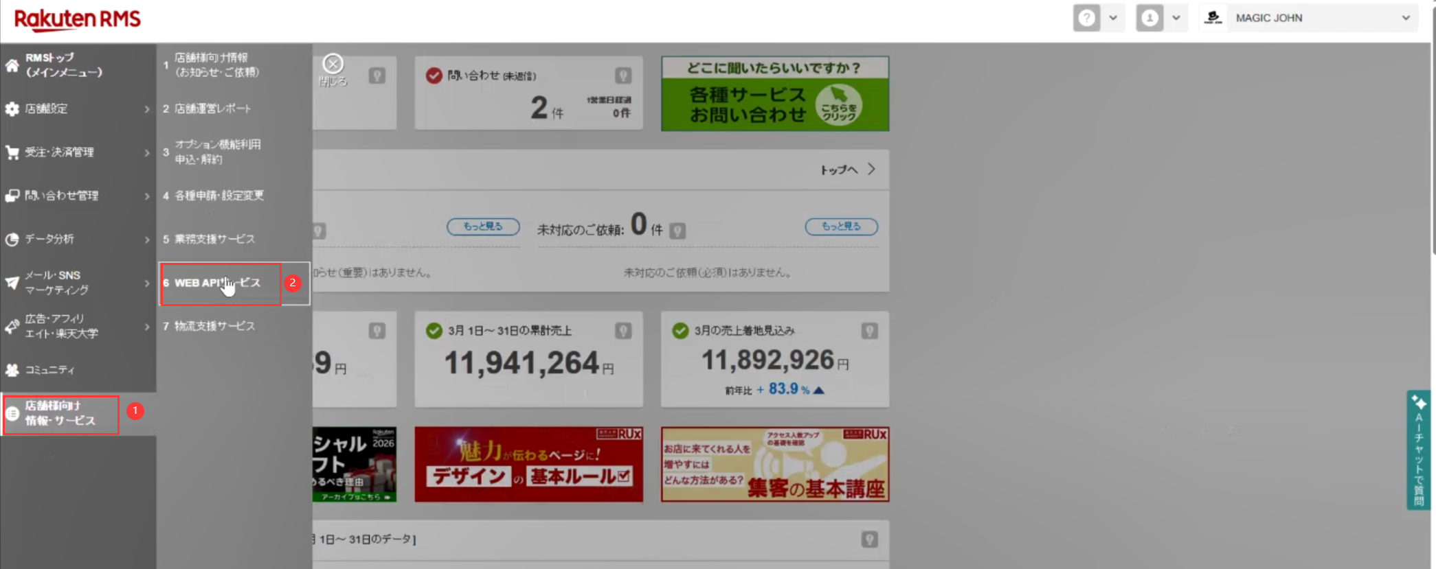 (1)在 乐天Rakuten后台进入WEB API接口;